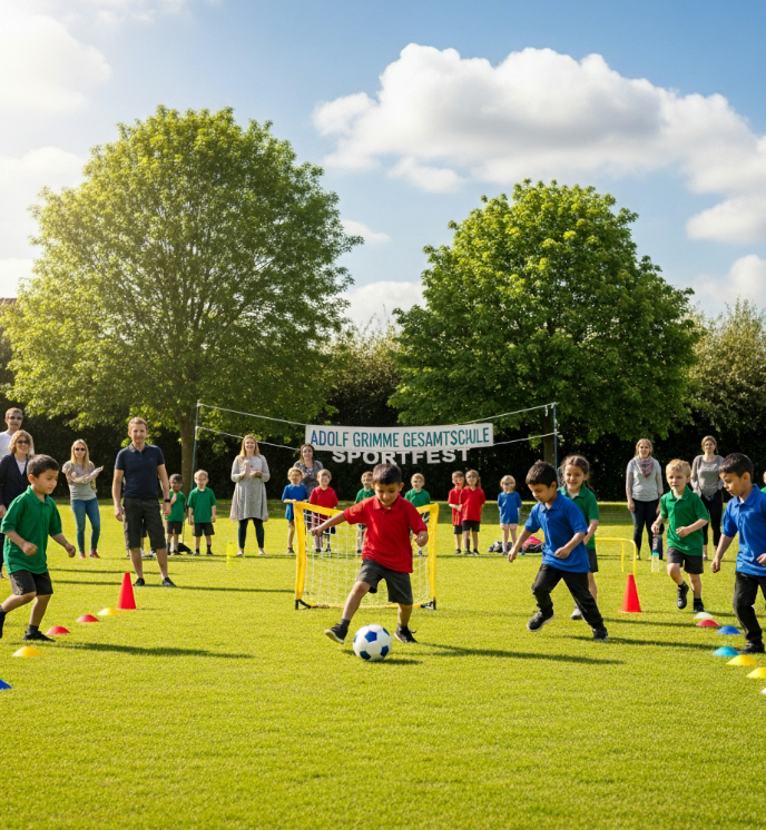 Fast 50 Schülerinnen und Schüler hatten in rund vier Schulstunden eine Menge Spaß am Kinder-Fußballtag. Viele von ihnen konnten neue Erfahrungen und ein tolles Gefühl mit nach Hause nehmen. Die Adolf-Grimme-Gesamtschule bedankt sich abschließend noch einmal bei FutureSport, der Fußballschule Karsten Surmann und natürlich den Sponsoren, ohne die eine Durchführung dieses Tages nicht möglich ist! Mit voller Vorfreude blicken bereits die nächsten Schülerinnen und Schüler auf den nächsten Kinder-Fußballtag, der hoffentlich im Jahr 2026 wieder stattfinden wird.