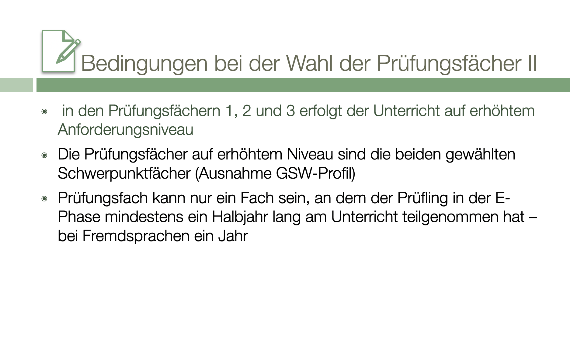 Die Zusammenstellung der Fächer und Profile erfolgt immer nach jeweils aktuellen und gültigen Rechtsvorschriften, Erlassen und Verordnungen für die gymnasiale Oberstufe.