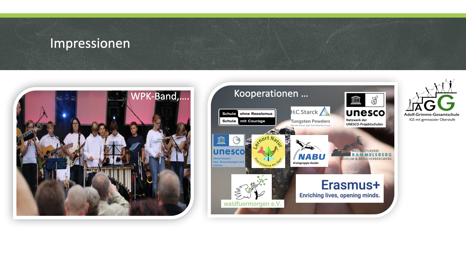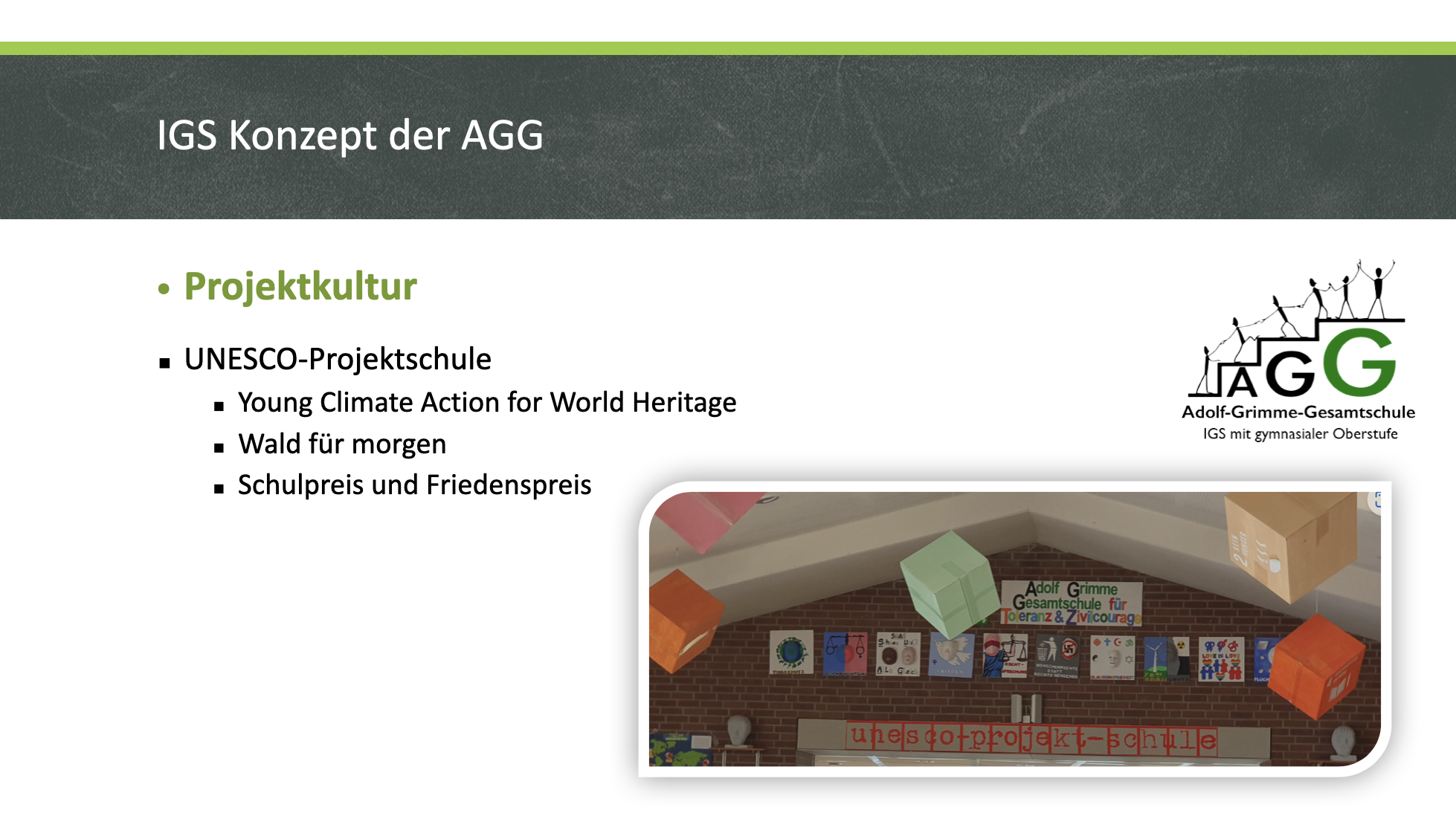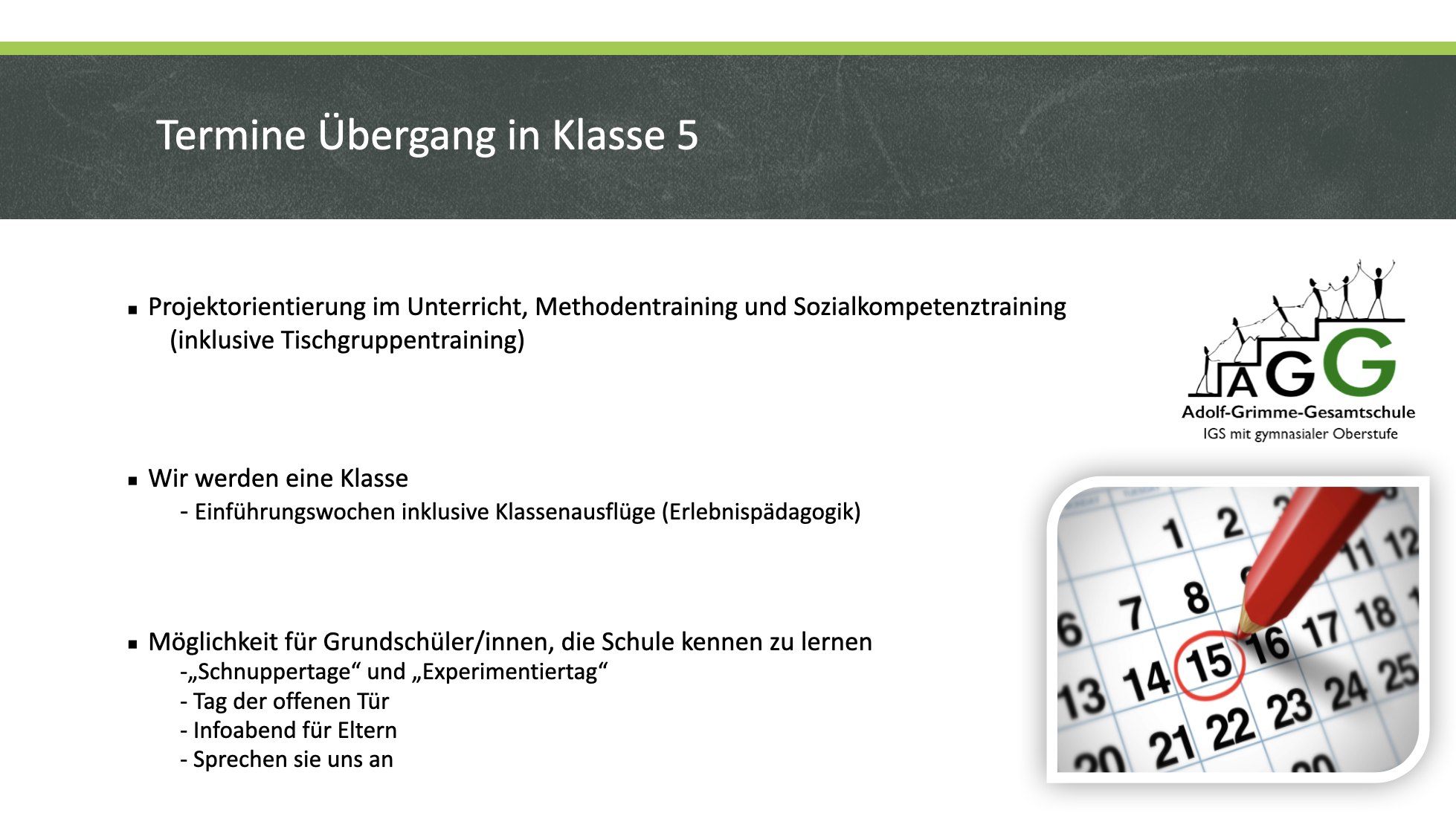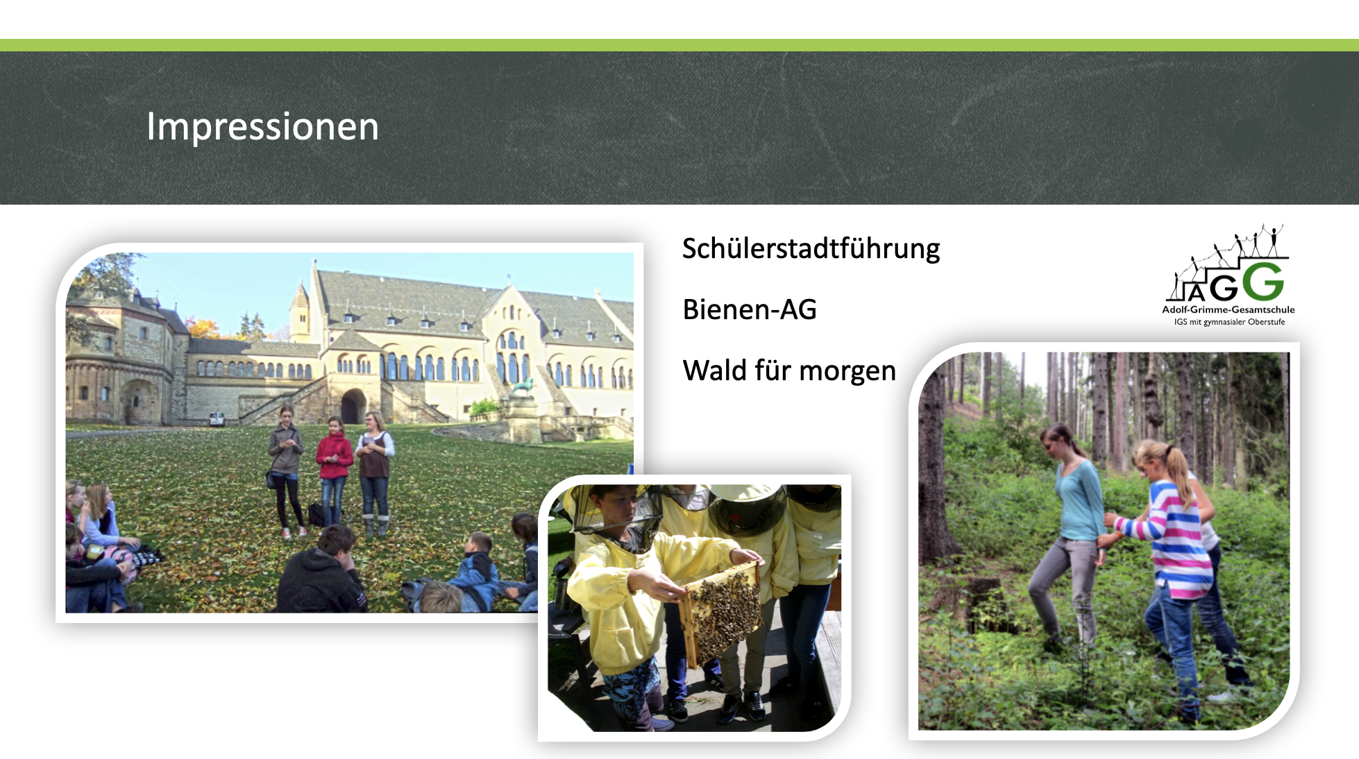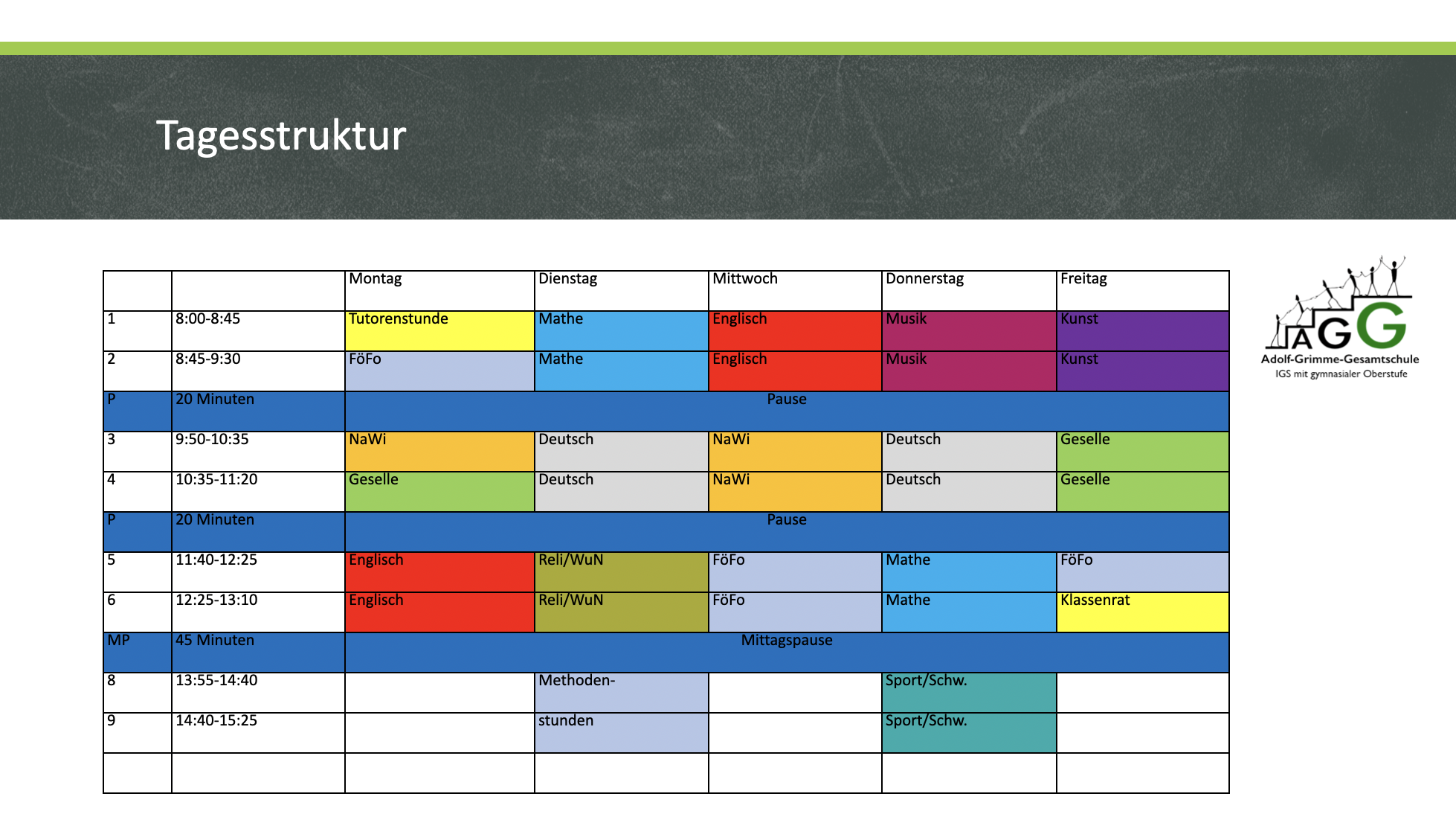 An der Adolf-Grimme-Gesamtschule werden alle Schülerinnen und Schüler (ich bin mir nicht mehr sicher, auf welches Format wir uns geeeinigt haben) in der Sekundarstufe I von Klasse 5 bis 10 gemeinsam im Klassenverband unterrichtet. Dort spielt die innere Differenzierung auch mit Lehrertandems eine besondere Rolle. Jede Schülerin und jeder Schüler wird auf seinem Niveau gefördert und gefordert. Ab Klasse 7 kommen Wahlpflichtkurse hinzu.