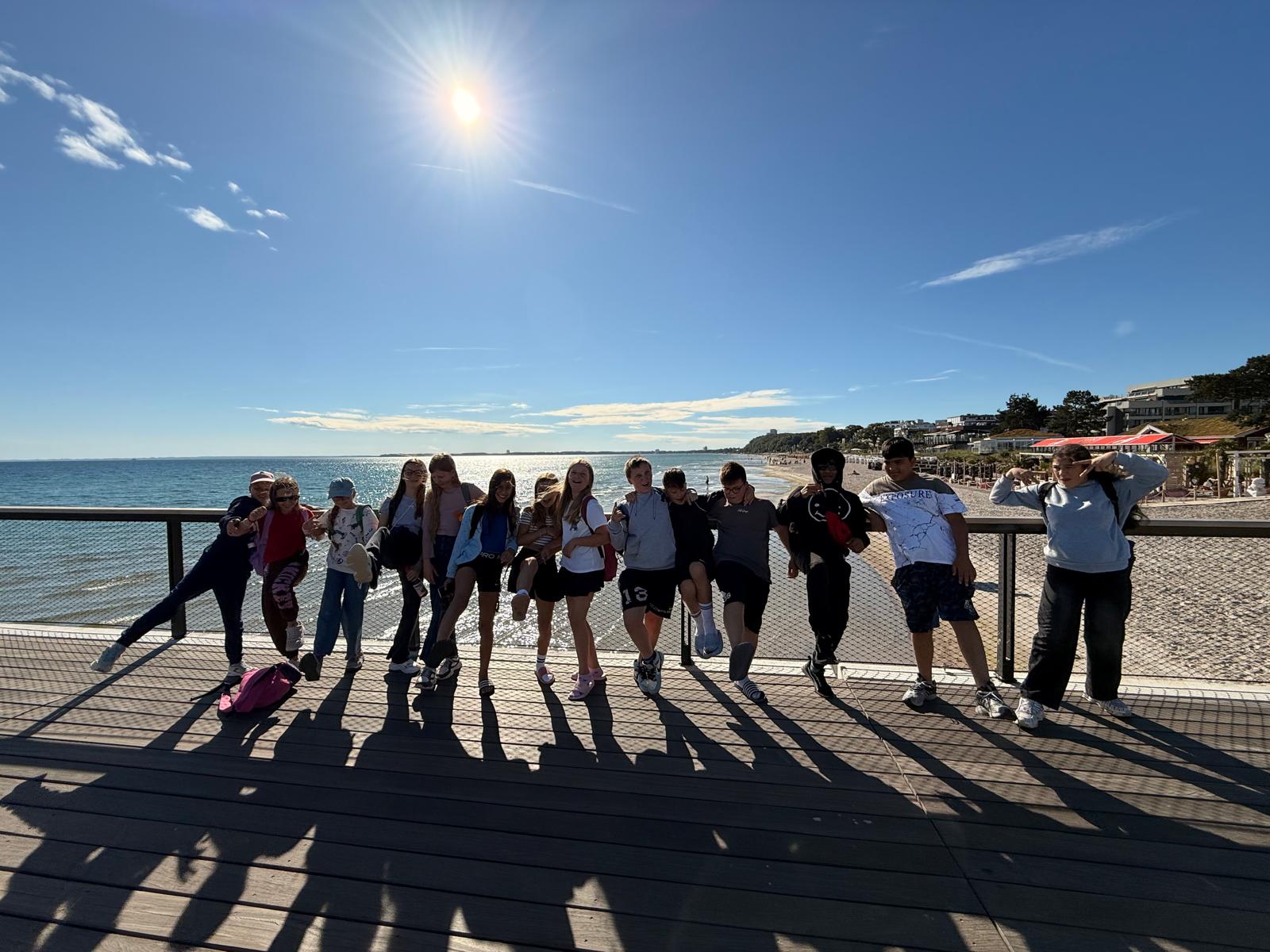 Der zweite Tag beginnt mit einem leckeren Frühstück und Lunchpaket für unterwegs. Dann kommt die Überraschung: Frau Bohnsack hat Geburtstag! Wir singen lauthals ein Geburtstagslied und machen uns über den Geburtstagskuchen her. Anschließend fahren wir alle zusammen mit dem Bus ins Sea Life nach Timmendorfer Strand. Stellt euch vor: Rochen, bunte Fische und sogar echte Haie schwimmen direkt vor unserer Nase! Nach dem staunenden Rundgang dürfen wir in kleinen Gruppen durch die Stadt ziehen. Als wir später zurück zur Jugendherberge wandern, regnet es so doll, dass wir klitschnass werden – zum Glück gibt’s danach heiße Duschen! Aber Frau Bohnsack und Herr Henze und ein paar Mitschüler*innen haben Glück im Unglück: Sie warten einfach in einer Strandbar bei Apfelschorle, bis der Regen vorbei ist. Zum Abendessen gibt es leckere Geflügelbällchen mit Reis. Danach können wir basteln, Fußball spielen, am Strand chillen oder Gesellschaftsspiele zocken. So eine Auswahl! Am Ende schlafen wir alle wie Steine.