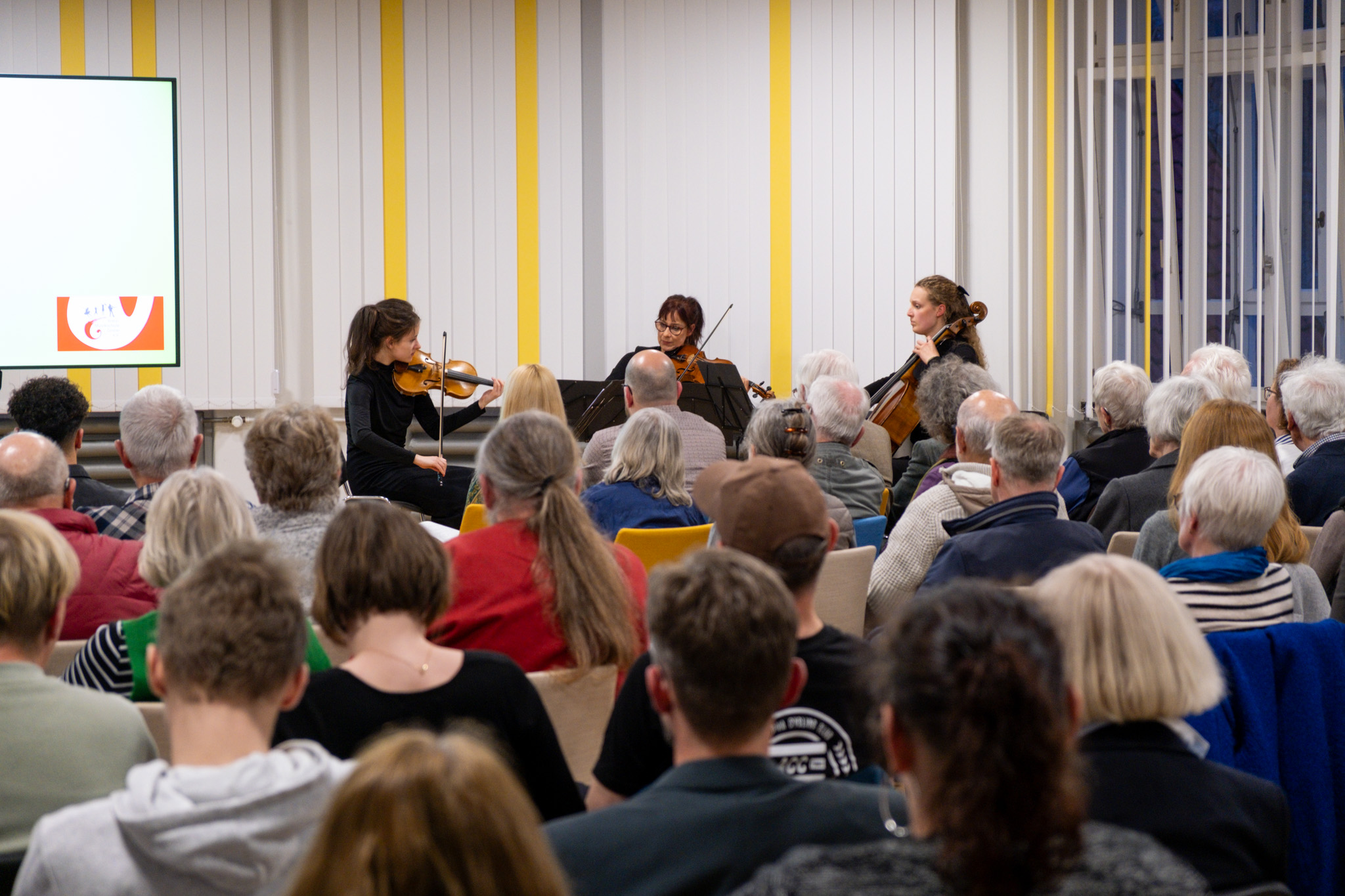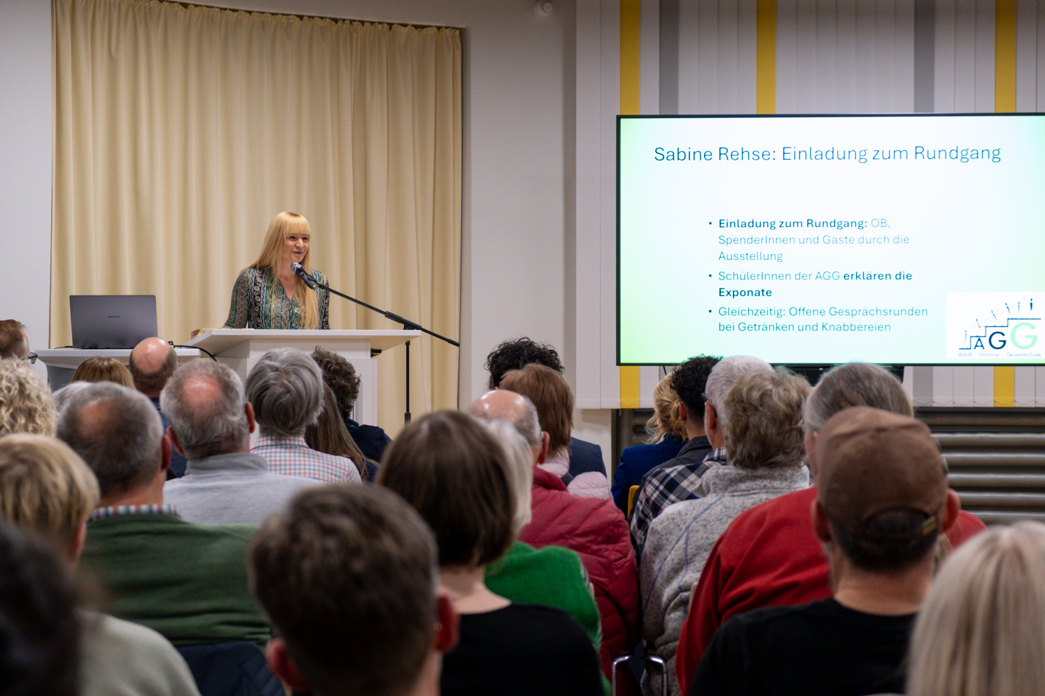 Der Verein Spurensuche Harzregion hatte die Veranstaltung organisiert: Dr. Kurt Fontheim führte in die Thematik ein und Dr. Stefan Cramer stellte die Recherchen zu Goslarer „Euthanasie“-Opfern vor. Sabine Rehse stellte das Konzept der Ausstellung vor. 14 Schüler*innen der AG „Goslar im Nationalsozialismus“ (JG 10) präsentierten zunächst eindrucksvoll ihre Projektarbeit und stellten später im Ausstellungsraum den etwa 120 Gästen ihre eigens erstellten Exponate vor.