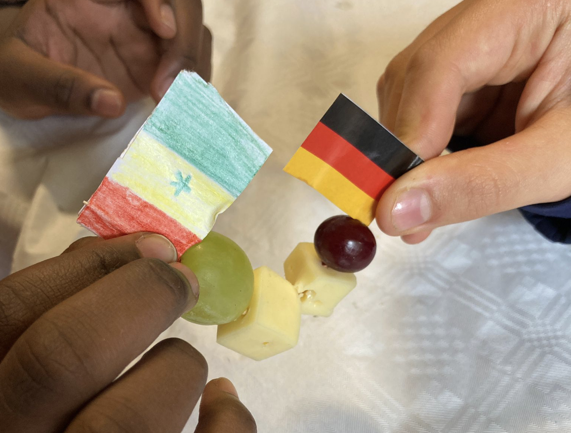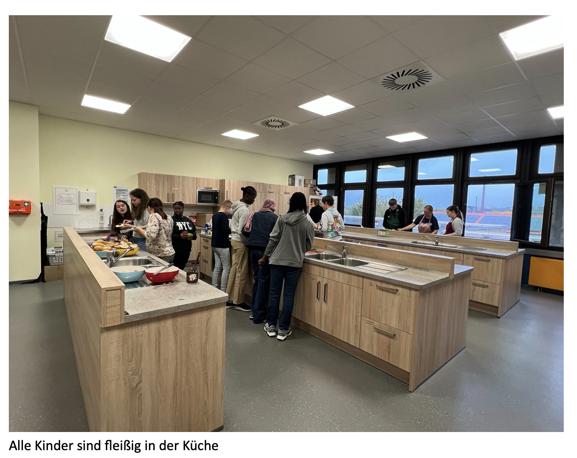 Am Mittwoch wurde thematisch im Rahmen der Austauschbegegnung gearbeitet. Es wurde gemeinsam mit der Schülerfirma Brotzeit unter der Leitung von Frau Eschemann gekocht und vorbereitet. Es war sehr interessant und spannend zu sehen, wie die Traditionen beider Länder sich unterscheiden und in vielen Punkten doch gleichen. Schülerinnen und Schüler haben in gemischten Gruppen tolle Ergebnisse erzielt und sehr produktiv gearbeitet. Dies wurde am Freitag fortgesetzt und in die Endform eines gemeinsamen Kochbuchs gebracht, welches die Schüler:innen zuerst digital erstellt haben. Unterstützt wurde die Austauschgruppe an beiden Tage von der Afrika-AG, die auch motiviert und interessiert an den Projekten mitarbeitete.