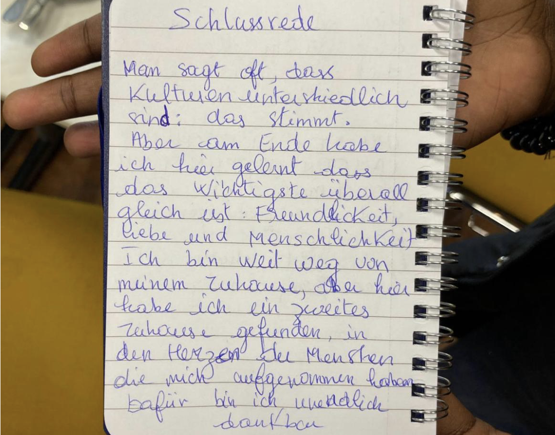Frau Voss begrüßte alle Anwesenden mit dem Satz „Zu Beginn der Woche begrüßten wir Gäste und heute nehmen wir Abschied von neuen Freunden“ und machte somit deutlich, dass die Woche ein voller Erfolg war und ein toller Start für eine hoffentlich langfristige gemeinsame Partnerschaft.