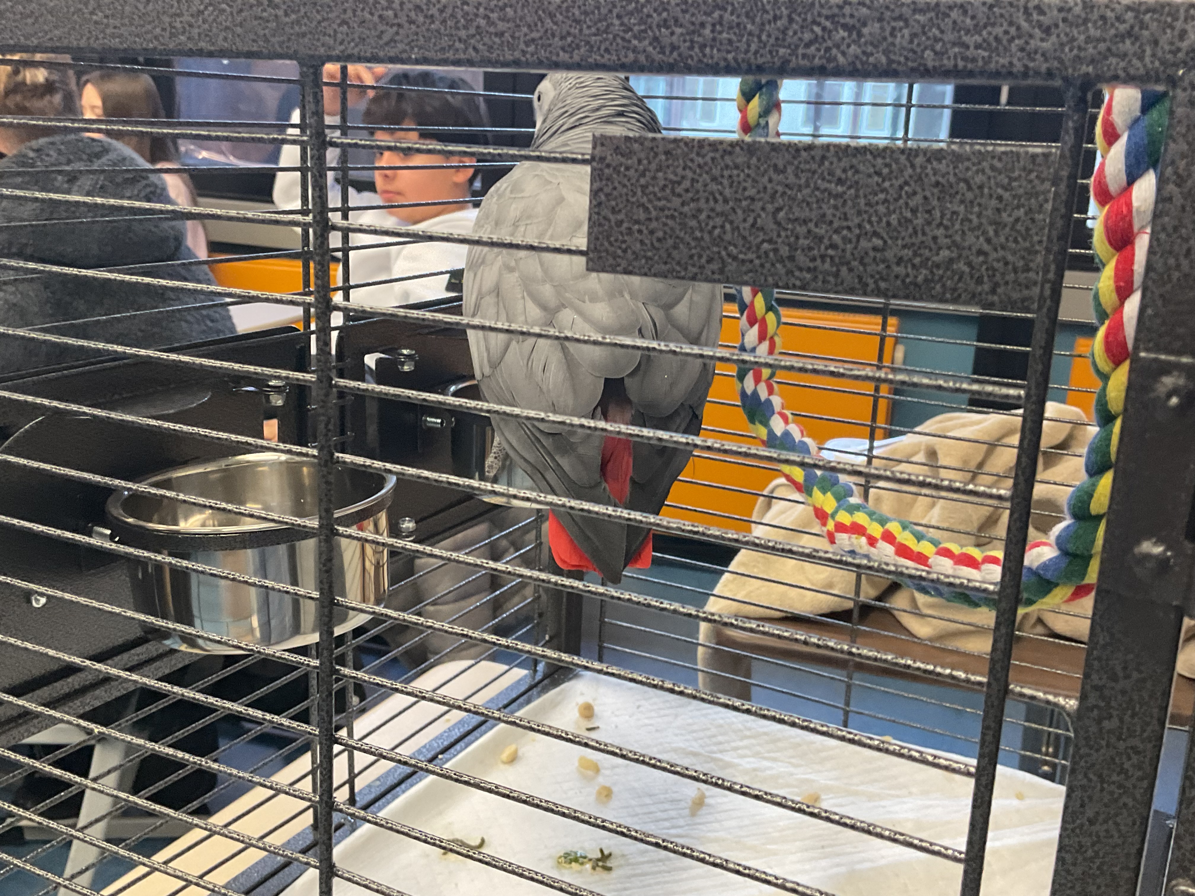 Haley ist 4 Jahre alt und ich habe sie seit 2 Jahren. Als Haley in unser Klassenzimmer kam, waren alle geschockt, weil sie noch nie einen Papagei gesehen hatten.
