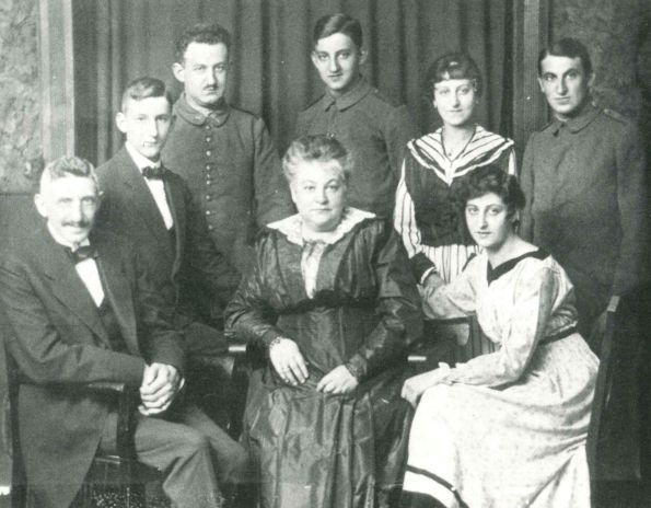 1 Familie Jacob gegen Ende des 1. Weltkrieges: v. l. Vater Emil, Hans, Alfred, Mutter Henriette, Wally, Luzzie und Charley Jacob/ Quelle: Archiv Hans Donald Cramer