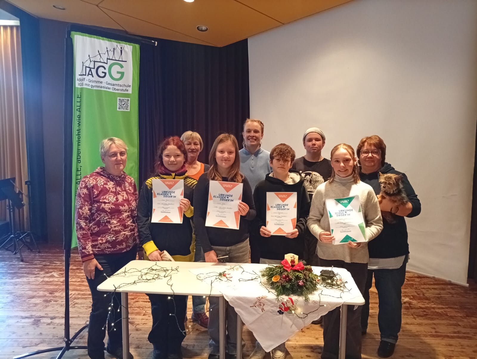 Für ihre tollen Leistungen wurden alle teilnehmenden Klassensiegerinnen und Klassensieger mit einer Urkunde ausgezeichnet. Zusätzlich erhielten sie – ebenso wie die Schulsiegerin – ein besonderes Buchgeschenk. Möglich gemacht hat dies der Förderverein der Adolf-Grimme-Gesamtschule.